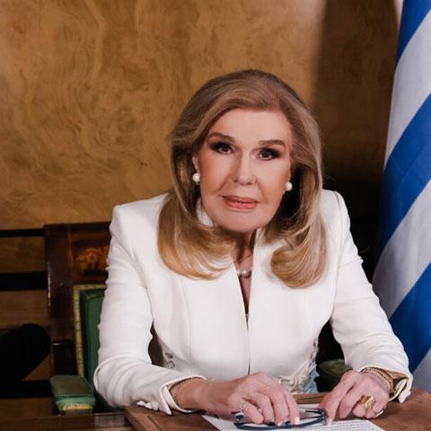 She is Founder and Honorary President of the “Alexandria Center for Hellenistic Studies”, Member of the Bibliotheca Alexandrina Advisory Board and of the Leadership Councils of “Robert F. Kennedy Human Rights”, “Concordia” and “The Hellenic Initiative”, Trustee of “MENTOR Foundation”, “Nizami Ganjavi International Center” and other organizations. She is the only Greek woman who has received the Grand Cross of the Order of Beneficence of the Hellenic Republic. She has also received the rank of Officer of the “Legion d’Honneur” of the French Republic, the Academy of Athens Award and many other national and international distinctions. She holds a BA in Economics and in History of Art and MPhil in Archaeology. She is mother of five children.